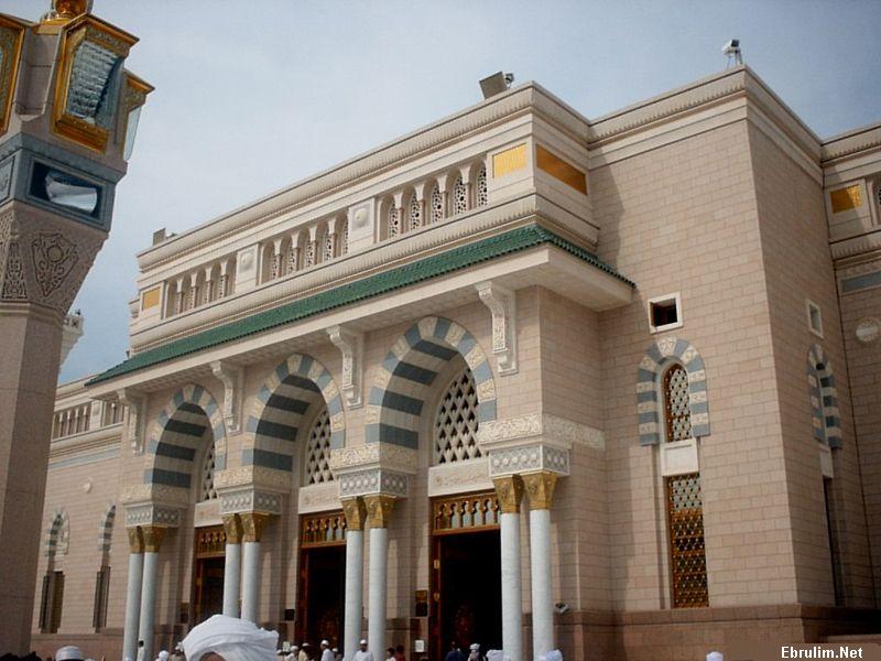 Ücüncü resimde görülen kapıdan camiye girilip ilerlendiğinde Peygamber Efendimizin minberi, evi ve kabrine ulaşılmaktadır.